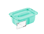 Емкость-контейнер изготовлен из устойчивого к воздействию моющих и дезинфицирующих растворов полипропилена (бирюзового цвета). Корпус контейнера представляет собой емкость, выполняющую функцию ванны для заливания рабочего раствора моющего или моюще-дезинфицирующего средства. В верхней части корпуса имеются бортики для плотного прилегания крышки и удобства переноски емкости, и выемки для устойчивой установки поддона на корпусе при стекании раствора. На внешней стороне бортиков имеются 4 зоны для размещения прозрачных пластиковых карманов под бумажный носитель служебной информации (этикетку). Перфорированный поддон с четырех сторон имеет ручки для безопасного извлечения его из корпуса и перемещения для дальнейшего ополаскивания содержимого. Корпус и поддон контейнера имеют сглаженные углы.